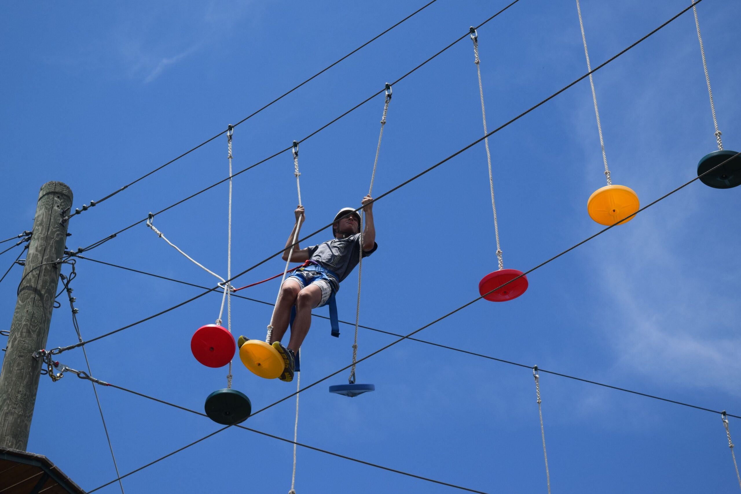 The LEAP course is an adventure-based, hands-on experience that allows your group to come together to learn more about yourselves, each other, and how to overcome challenges. Carefully constructed and managed for its unique purpose, the Challenge Course is a collection of poles, cables and ropes strung together into Elements, individual activities that challenge individuals and groups in specific and distinctive ways. The Low Elements course is designed to bring your group together by taking you through a series of obstacles and situations that require you to work together to find the solution to the problem. High Elements take you and your group to new heights by challenging you to stretch your comfort zone.